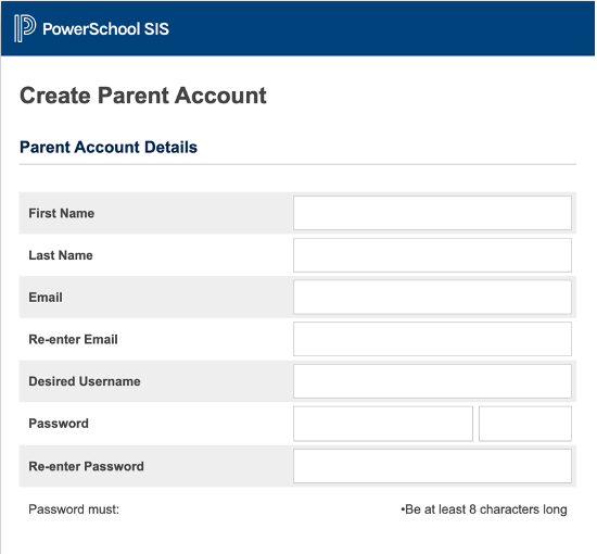 When it’s time to fill out the online form, you will receive an email from us that you are now able to create an account through the PowerSchool Portal.