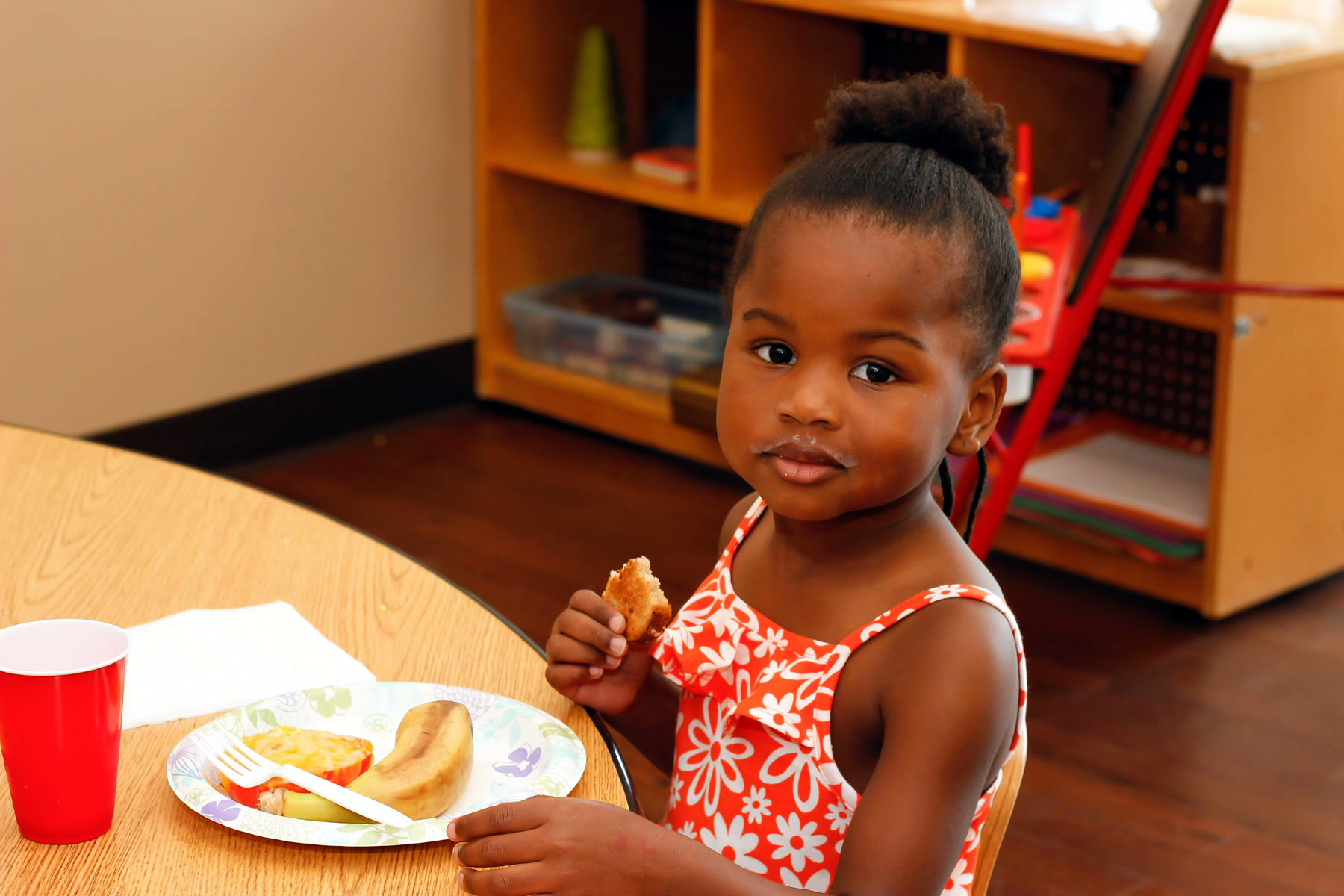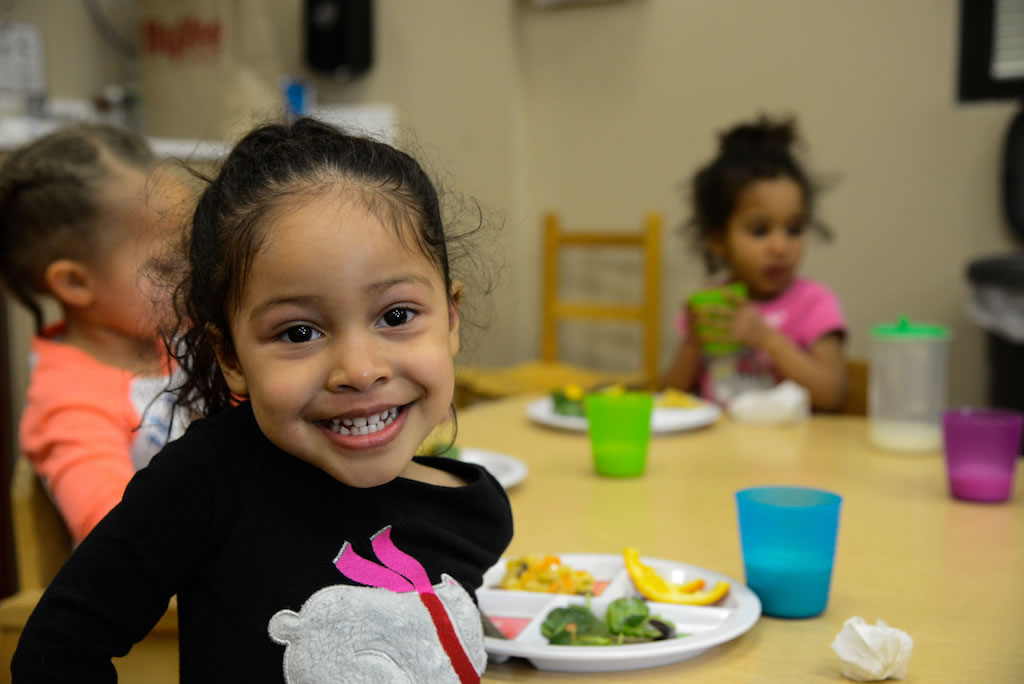 One City’s daily menu includes a combination of fruits, vegetables, grains and proteins. Our children eat their lunch, breakfast and snack on The Plate designed by the United States Department of Agriculture and former First Lady Michelle Obama. Our children are taught daily what good food is using The Plate and the USDAs curriculum for young children. The Plate replaced the Food Pyramid in 2011.